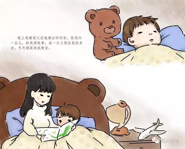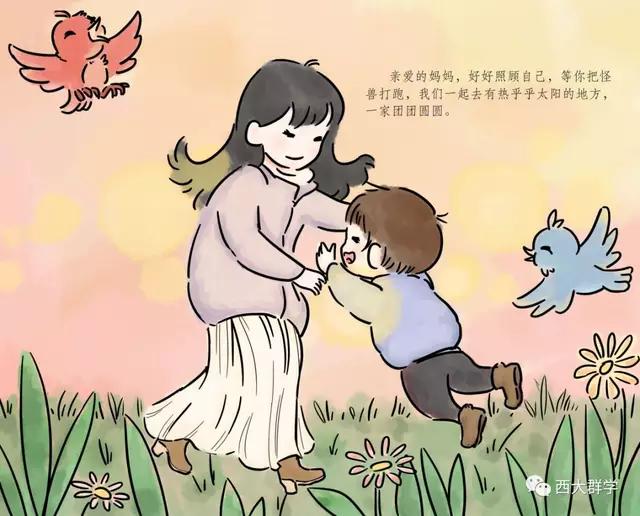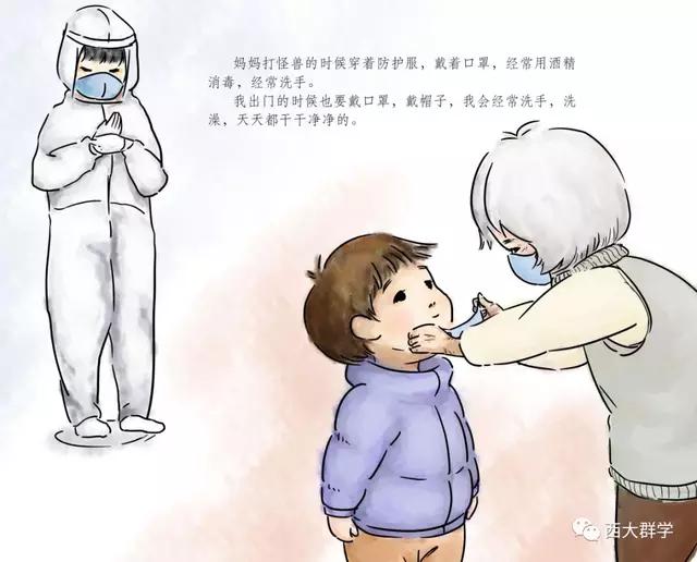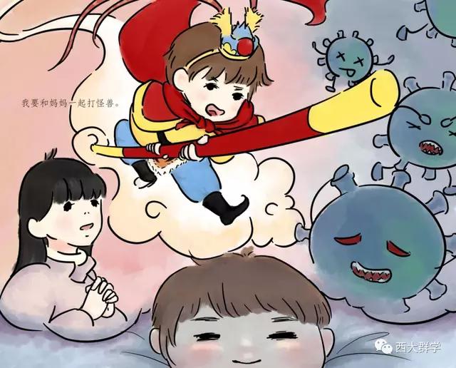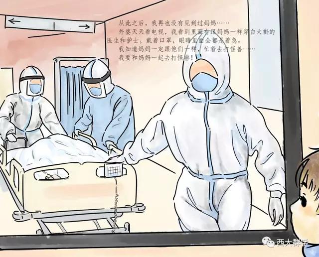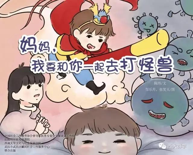 在參加社會(huì)工作教育協(xié)會(huì)督導(dǎo)和醫(yī)務(wù)專委會(huì)支援黃岡工作組的工作中,西南大學(xué)社會(huì)工作系陳緯老師聽到了很多醫(yī)護(hù)人員與孩子分離,孩子萬般思念父母的故事。有感而發(fā),她專為醫(yī)護(hù)工作者和他們的家庭寫了一個(gè)故事《媽媽,我要和你一起去打怪獸》,并由文化與社會(huì)發(fā)展學(xué)院2017級(jí)學(xué)生鄒樂月、張笑天為故事配圖,做成繪本。繪本展現(xiàn)了在醫(yī)院工作的媽媽參與抗擊新冠肺炎疫情后,孩子元元在家努力和媽媽一起抗擊病毒的故事,用生動(dòng)易懂的語言為孩子解惑,幫助小朋友消除恐懼心理,引導(dǎo)他們看到和理解媽媽的工作,今后也要做打“怪獸”的小英雄。