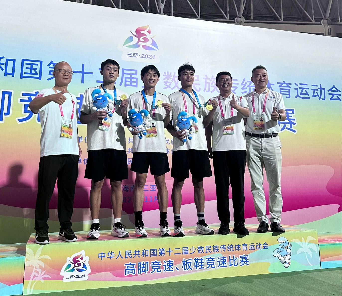 在11月25日進(jìn)行的板鞋競(jìng)速男子200米比賽中,體育教育專業(yè)2022級(jí)學(xué)生多杰旺扎、羅秀準(zhǔn)、澤仁斯朗憑借默契的配合與出色的發(fā)揮,一舉奪得該項(xiàng)目的第一名。在29日上午的板鞋競(jìng)速男子100米比賽中,這三位運(yùn)動(dòng)員成功衛(wèi)冕第一名,續(xù)寫了他們的輝煌戰(zhàn)績(jī)。隨后,三位運(yùn)動(dòng)員與隊(duì)友桑丹、楊其凡、劉易林共同獲得板鞋競(jìng)速男子接力2×100米第二名。在同日進(jìn)行的高腳競(jìng)速男子100米決賽中,體育教育專業(yè)2021級(jí)學(xué)生李玉紅以穩(wěn)健的步伐獲得第三名,為學(xué)校再添榮譽(yù)。此外,學(xué)校運(yùn)動(dòng)員還憑借出色的團(tuán)隊(duì)協(xié)作和頑強(qiáng)的拼搏精神獲得板鞋競(jìng)速男女混合接力4×100米第四名的優(yōu)異成績(jī)。