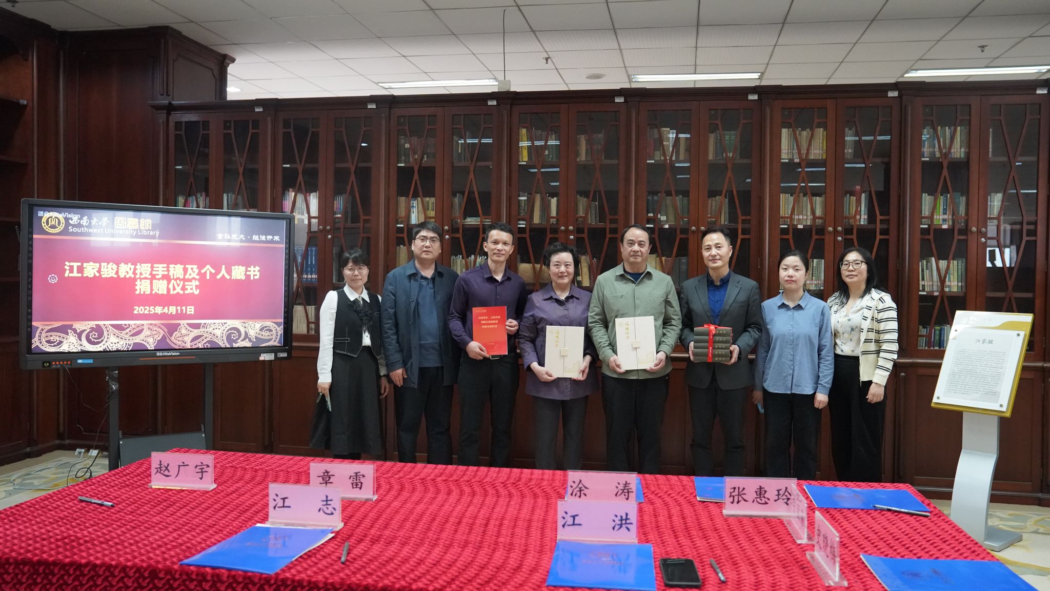 涂濤在答謝辭中高度贊揚了江家駿教授家人的慷慨義舉。他介紹,這批文獻時間跨度從清末到近現代,內容涵蓋中西經典,版本稀缺性強,是“西南大學文庫”的重要補充。他表示,圖書館將對這批文獻進行數字化處理,并通過“古籍特藏數字服務平臺”向公眾免費開放,同時計劃于2026年舉辦“學貫中西·文脈傳承”主題展覽,為學校120周年校慶獻禮。