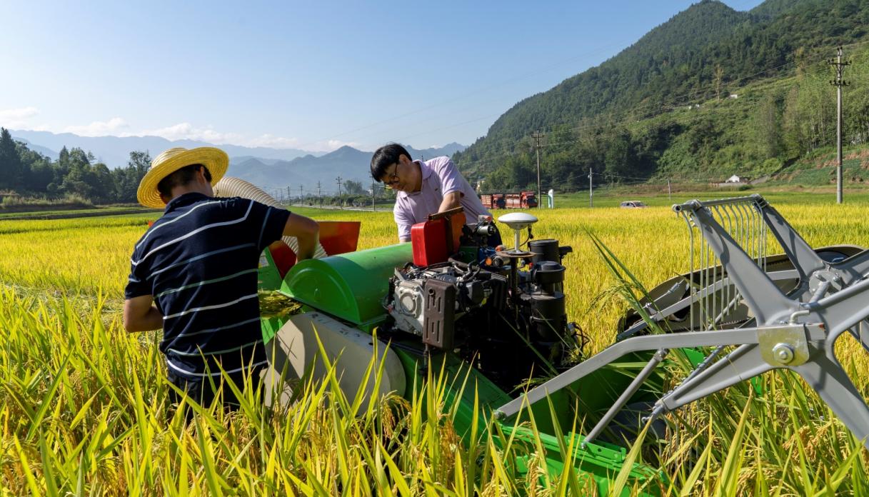 2023年9月,學院教師在田間測試即將推廣應用的無人駕駛水稻收割機