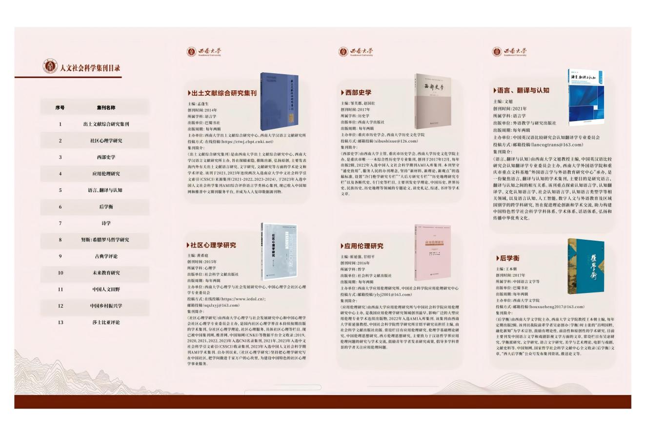 聚心敘事,推動社科國際傳播展現新氣象。一是支持學術集刊和外文期刊建設,推動數字賦能國際傳播矩陣構建。在16種學術集刊中,2種入選CSSCI集刊,1種入選AMI核心集刊,3種成為AMI入庫集刊;4種外文期刊中,入選ESCI、SCOPUS、DOAJ、BAK各1種。二是落實瀾湄合作與西部陸海新通道對接項目等工作,提升學術對話交流能力。依托中希文明互鑒中心設立文明交流互鑒項目推動中華文化國際傳播和跨文化人才培養;依托中國南亞國家減貧與發展合作中心開展鄉村振興與國家減貧國際培訓工作。三是鼓勵中文經典著作外譯,出版國家社科基金中華學術外譯項目成果等外文著作20余部,伊朗研究中心研究員艾森等翻譯出版中文著作近20部。