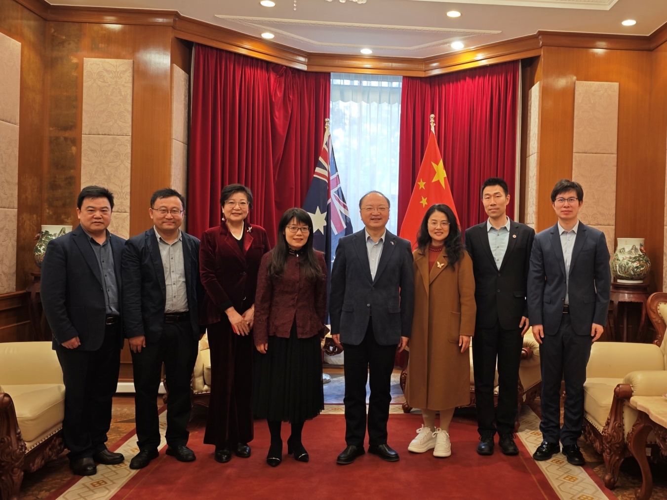 在澳訪問期間,代表團還拜會了中國駐墨爾本總領(lǐng)事館,會見了房新文總領(lǐng)事以及丁莉參贊。房新文對學(xué)校合作辦學(xué)取得的成績表示肯定,希望學(xué)校持續(xù)深化與澳洲高校的合作。