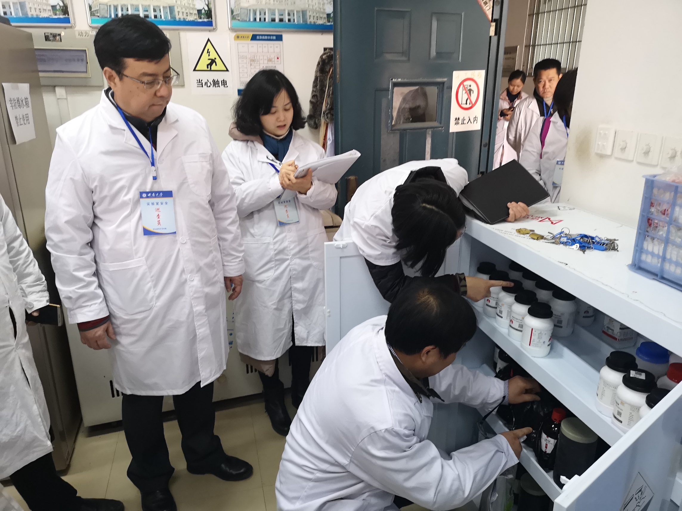 1月2日,節后上班第一天,學校根據教育部辦公廳《關于立即開展實驗室安全檢查的緊急通知》(教發廳函[2018]216號)文件精神,在總結和吸取近期高校實驗室安全事故教訓基礎上,加大實驗室安全工作力度,開展實驗室安全突擊檢查工作,檢查由王進軍副校長帶隊,校長辦公室、研究生院、保衛處、基本建設管理處、實驗室與設備管理處和實驗室安全巡檢小組聯合參與。