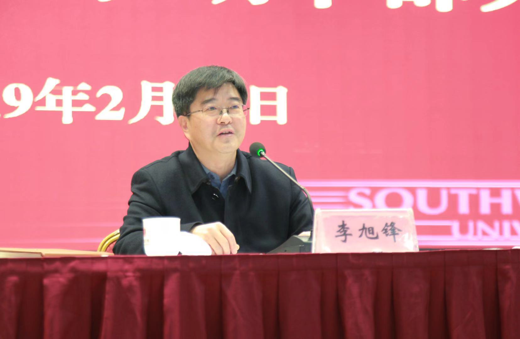 黨委書記李旭鋒作了“擔當作為 狠抓落實 著力書寫改革發展的奮進之筆”的主題講話。李書記在講話指出,2019年是新中國成立70周年,是全面貫徹落實黨的十九大精神和以習近平同志為核心的黨中央決策部署,全面建成小康社會、實現第一個百年奮斗目標的關鍵之年;是教育系統深入實施“奮進之筆”,貫徹落實全國教育大會精神的開局之年;是西南大學改革發展邁入新階段,攻堅克難、狠抓落實,交出“得意之作”的重要一年。在2019年全國教育工作會議上,陳寶生部長強調“落實、落實、再落實”,把今年確定為攻堅克難、狠抓落實之年。按照部黨組的統一部署,學校的廣大干部教師就必須擔當作為、狠抓落實,這是2019年學校工作的主旋律。我們要通過全校干部教師的新擔當新作為,為學校實現新發展新跨越開好局、起好步。