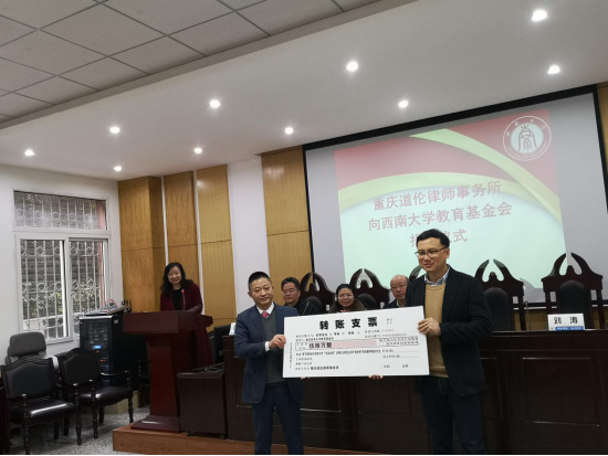 重慶道倫律師事務(wù)所此次向西南大學(xué)捐贈(zèng)50萬(wàn)元,資助舉辦西南大學(xué)“論說(shuō)會(huì)道”法律大講堂,組建法學(xué)“道倫杯”辯論隊(duì)及舉辦“道倫杯”辯論賽等相關(guān)活動(dòng)。