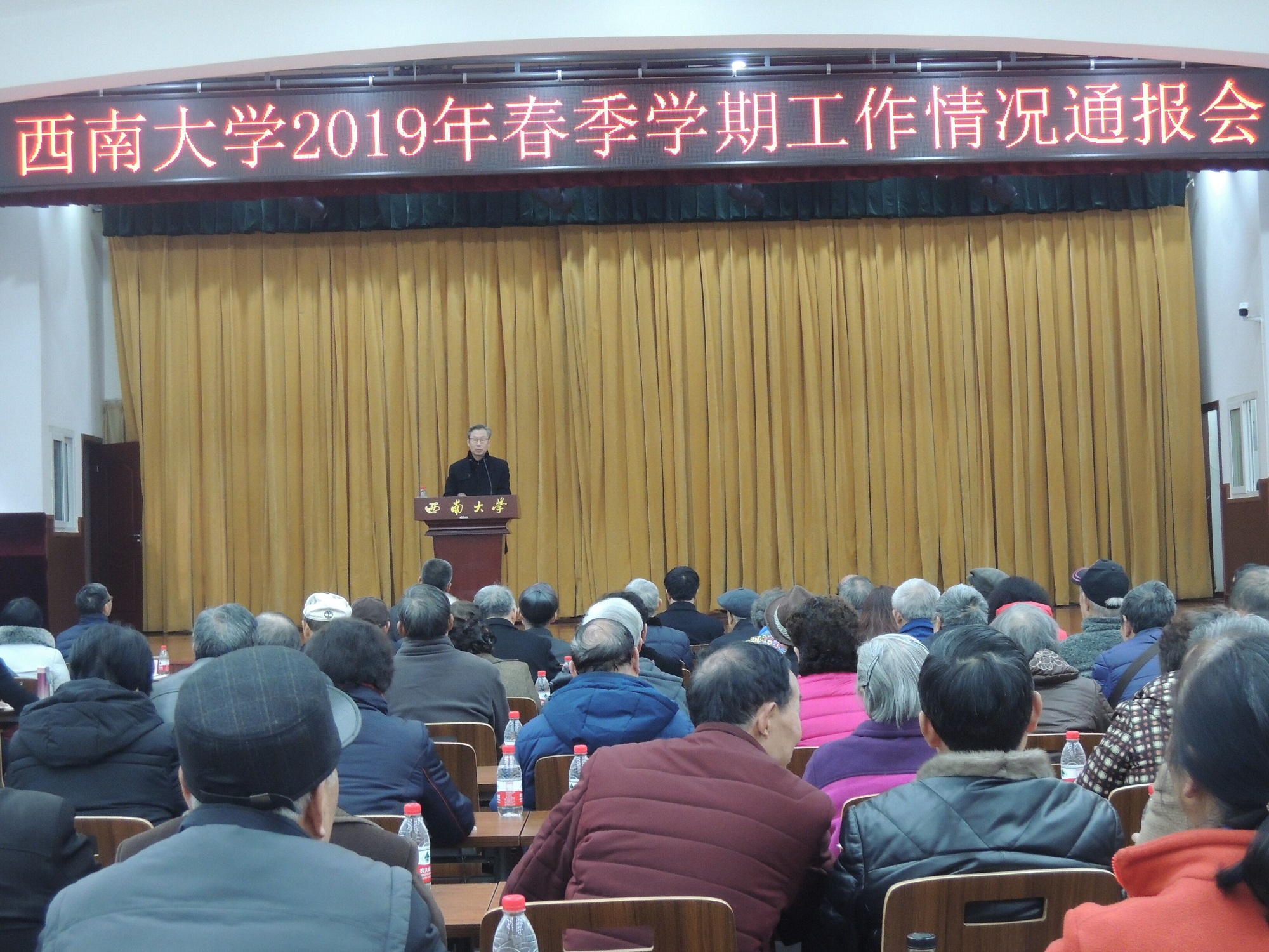 3月14日下午,學(xué)校召開會議,向離退休教職工代表通報2019年學(xué)校主要工作。學(xué)校黨委書記李旭鋒、黨委副書記安春元出席會議。有關(guān)職能部門負責(zé)人和離退休教職工代表近200人到會。會議由安春元副書記主持。