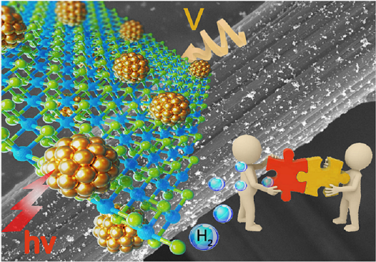 該論文通過理論計算和實(shí)驗(yàn)結(jié)果,詳細(xì)報道了金納米等離子體在超小二硫化鉬納米片載體上的自發(fā)生長過程。通過調(diào)節(jié)反應(yīng)進(jìn)程可控制材料的生長,從而得到多種形貌可調(diào)控的金/二硫化鉬異質(zhì)結(jié)復(fù)合物。基于該合成方法,該文探究了等離子體激發(fā)熱電子對二硫化鉬缺陷催化活性增強(qiáng)作用的影響,證實(shí)了熱電子對活性位點(diǎn)催化促進(jìn)效應(yīng)具有距離依賴相關(guān)性。當(dāng)作為熱電子給體的等離子金納米靠近二硫化鉬缺陷時,光輻射對電催化效率具有最高的增強(qiáng)作用。此外,該論文還指出,二硫化鉬納米片平面修飾的金納米能夠?yàn)殡娀瘜W(xué)過程提供導(dǎo)電電子傳輸通道,保證等離子增強(qiáng)電催化作用的穩(wěn)定性。該論文作為二維材料領(lǐng)域的重要研究成果,為接下來在異質(zhì)結(jié)器件和等離子協(xié)同電催化方面研究提供了實(shí)驗(yàn)支持和理論基礎(chǔ)。