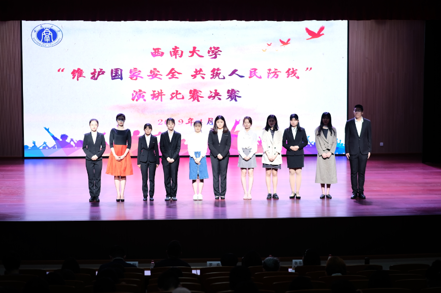 學校“維護國家安全 共筑人民防線”演講比賽在圓頂三樓報告廳舉行。經過初賽和復賽的層層選拔,來自12個學院的12名選手進入決賽。選手將國家安全與個人命運理念緊密相連,通過法治思想、網絡安全和生態安全等角度,闡述維護國家安全的重要性,表達對國家安全的關切。精彩的演講引起臺下同學的共鳴,贏得陣陣掌聲。最終,來自經濟管理學院的賀文瑾同學和物理科學與技術學院的劉洋帆同學榮獲一等獎。