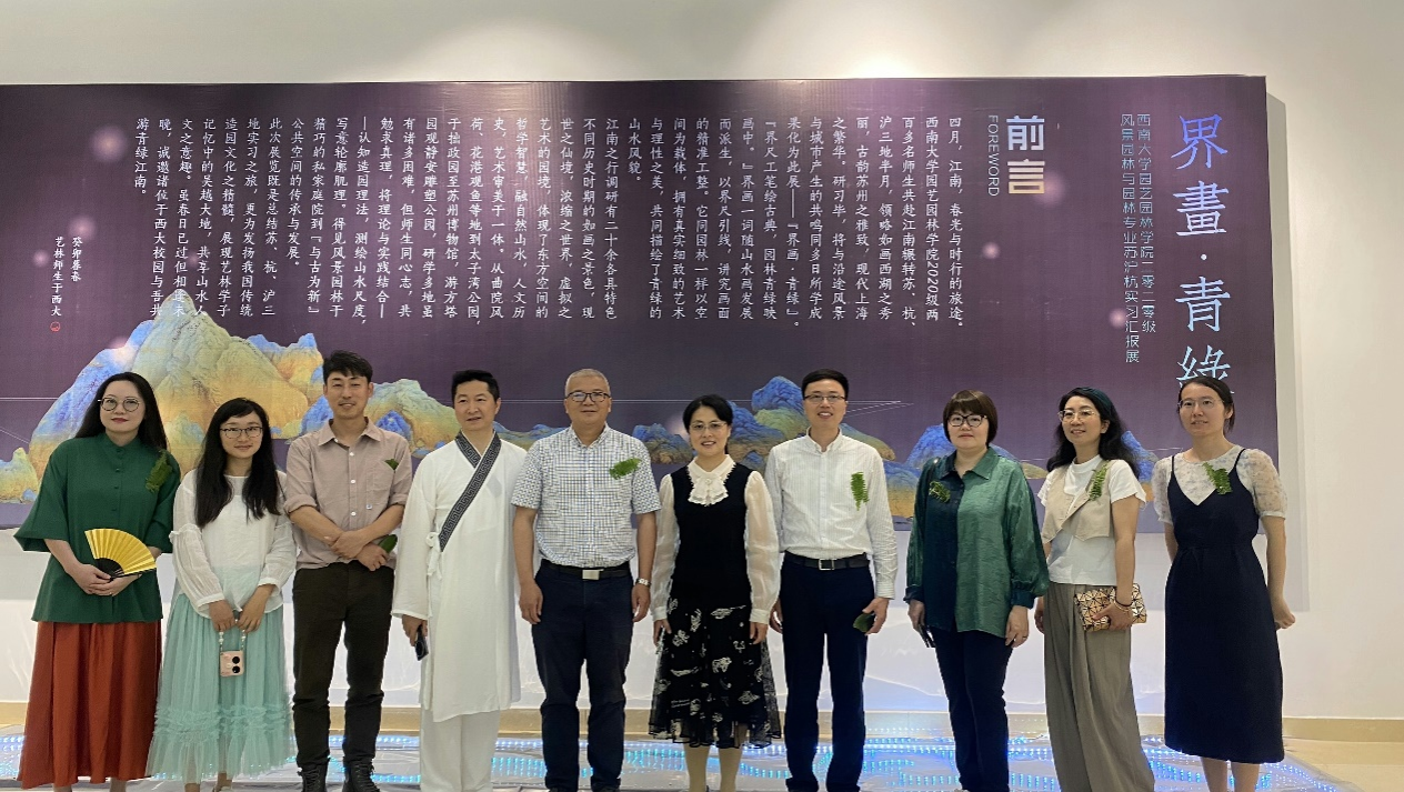 研習畢,師生歸。同學們通過精心構思,動手制作模型、展板、藝術活動等形式,將多日所學成果化為展覽——“界畫·青綠”。此次展覽既是總結蘇、杭、滬三地實習之旅,更為發揚我國傳統造園文化之精髓,展現藝林學子記憶中的吳越大地,共享山水人文之意趣。