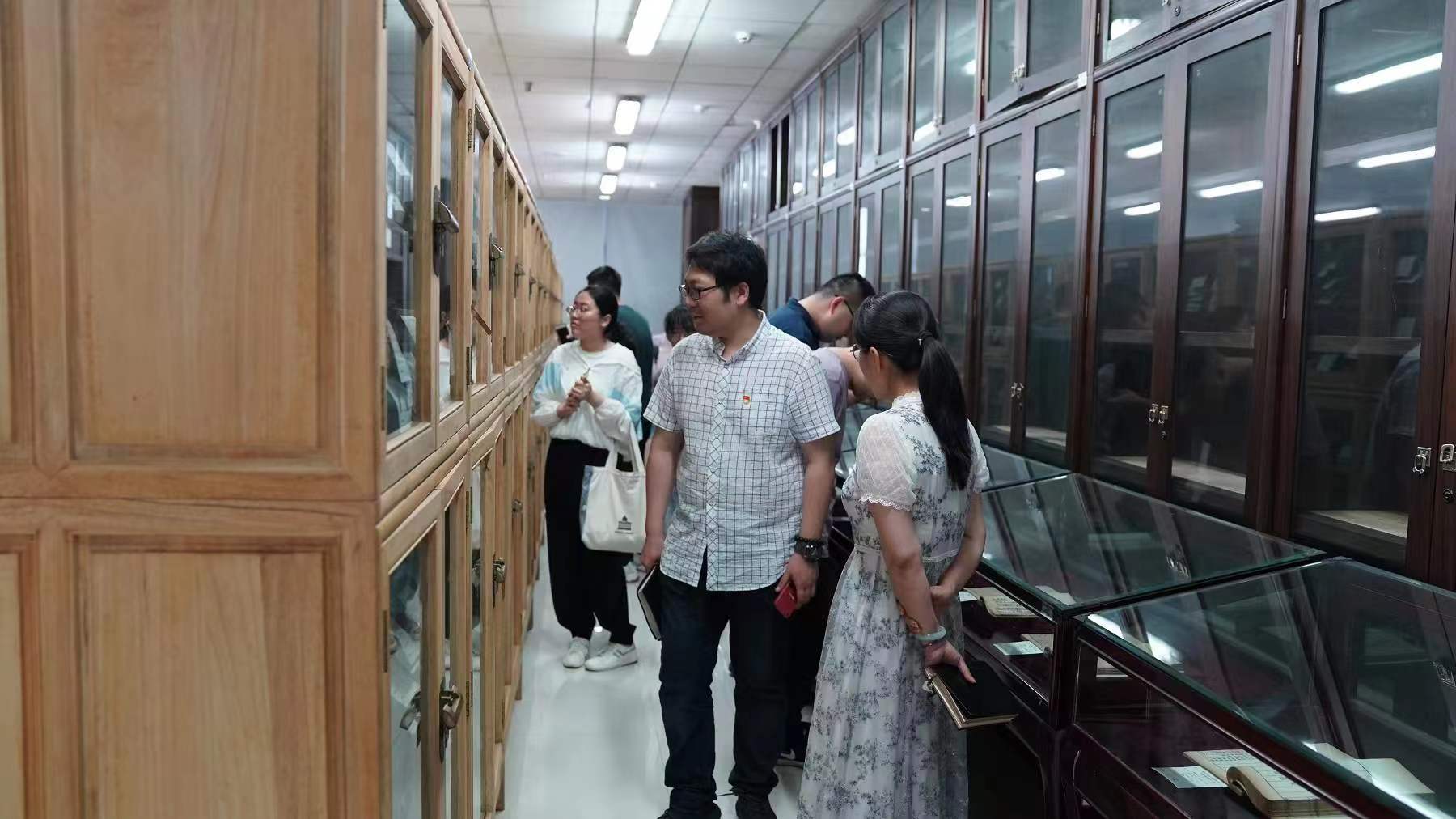 最后,在特藏部主任帶領(lǐng)下,與會(huì)人員參觀了圖書館民國文獻(xiàn)書庫和古籍書庫,鑒賞了圖書館的珍貴館藏——《唐人寫百法名門論義記》復(fù)制件、《文章正宗》復(fù)制件以及十二部入選《國家珍貴古籍名錄》的珍貴古籍。