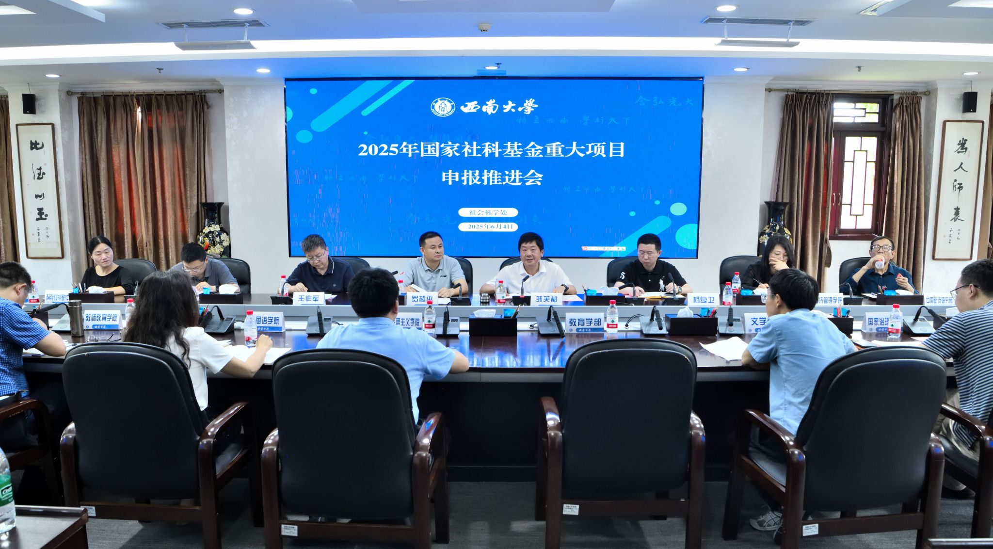 6月4日下午,學校召開2025年國家社科基金重大項目申報推進會。副校長鄒芙都出席會議,有關二級教學科研單位相關負責人、黨政辦公室以及社會科學處相關人員參加會議。會議由社會科學處處長羅超平主持。