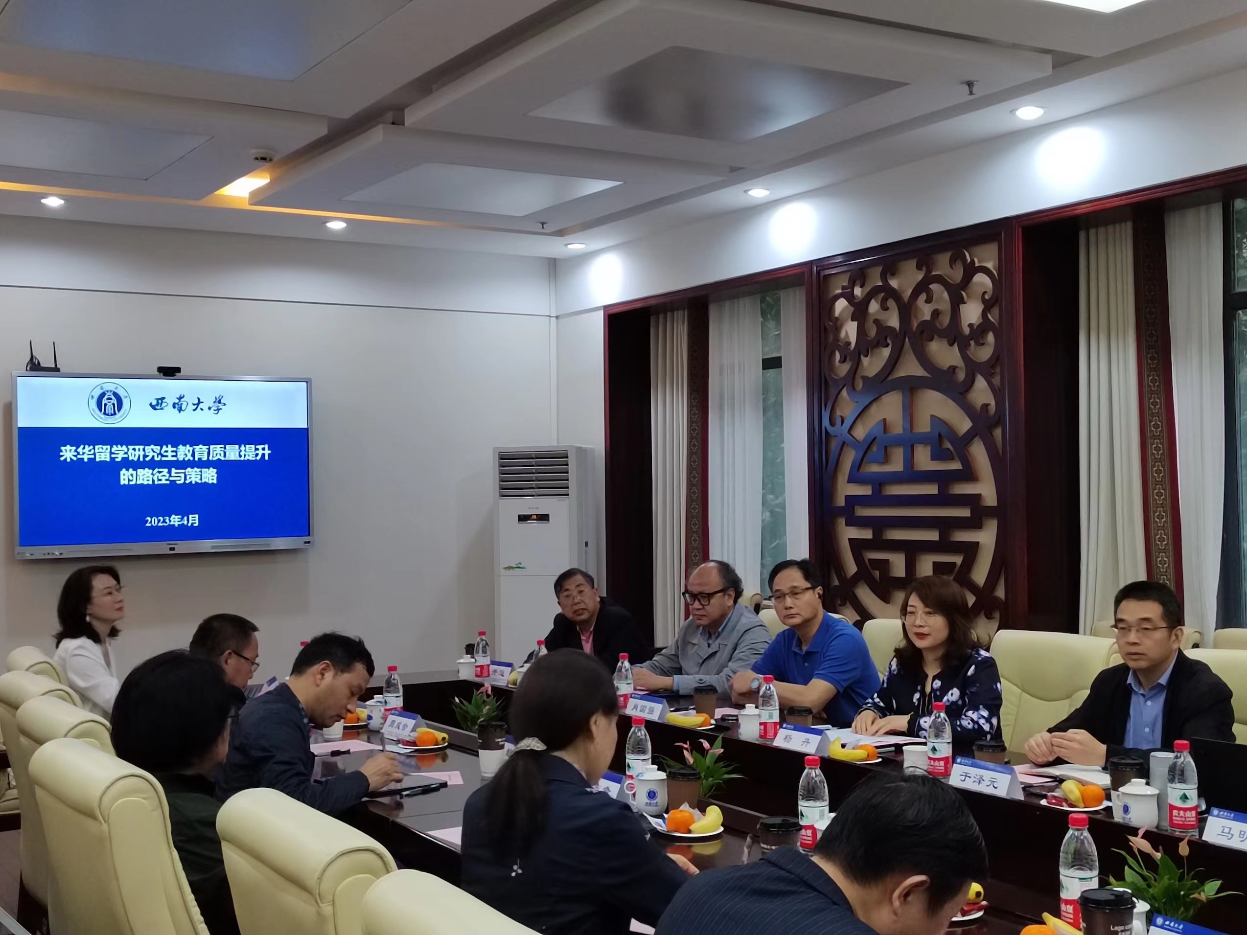 為深入學習貫徹黨的二十大精神,加強來華留學研究生導師隊伍建設,強化立德樹人根本任務,倡導來華留學研究生孜孜追求真知,潛心科研攻關,樹立人類命運共同體意識。4月13日上午,研究生院和國際學院組織開展了來華留學研究生導師沙龍。