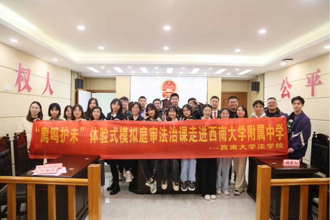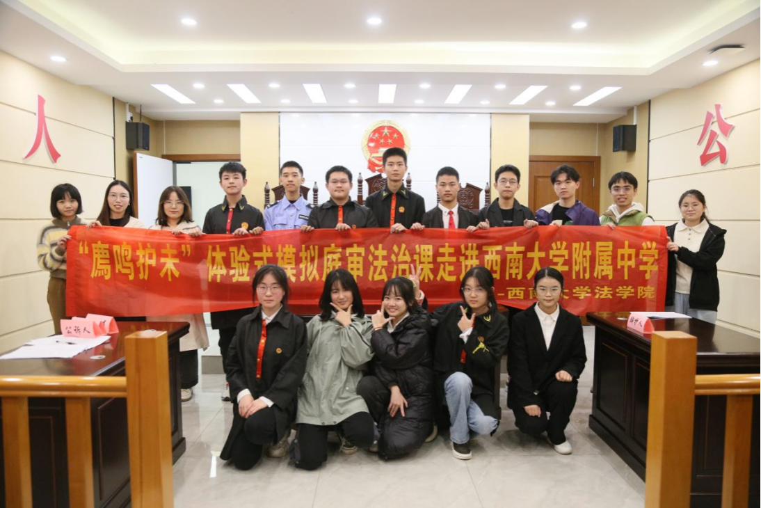 以上場景出現在西南大學附中與西南大學廌鳴法學社團合作舉辦的模擬庭審體驗活動現場。此次模擬庭審能幫助同學們深入了解司法系統的運作和法律程序,樹立法治意識,培養法制精神;同時能讓學生深度體驗與法學相關的工作場景,進一步提升興趣,激發動力,促進同學們生涯素養的提升。