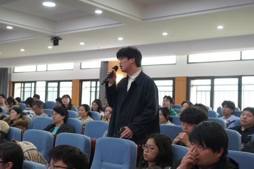 楊立國從多個方面為師生提出建議,包括留學規劃、項目選擇、語言準備和能力培養等。他特別強調了公派出國項目的申請流程以及關鍵時間節點,并提醒有意申請的師生盡早做好準備。此外,楊立國還與在場師生進行互動,就大家所關注的問題一一做了解答和說明。