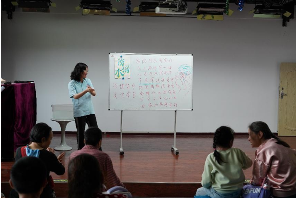 18日上午,細雨綿綿,北碚區特殊教育學校副校長陳群、德育處主任賀仲靈與特殊兒童及其家長在志愿者引導下乘坐校園觀光車一路觀賞西大校園。看到校園中郁郁蔥蔥的綠樹、五彩斑斕的鮮花,家長和孩子們都感嘆西大校園就像美麗的大花園。來到田家炳教育書院的實驗室,賀主任用圖文結合的繪本,滿含深情地為孩子們講述了西南大學杰出校友、我國“雜交水稻之父”袁隆平院士的生平故事,讓孩子們了解袁隆平爺爺克服困難,科學育種,最終解決世界糧食問題的科學故事。聽完故事后,孩子們拿著畫筆繪出自己心目中的袁爺爺。