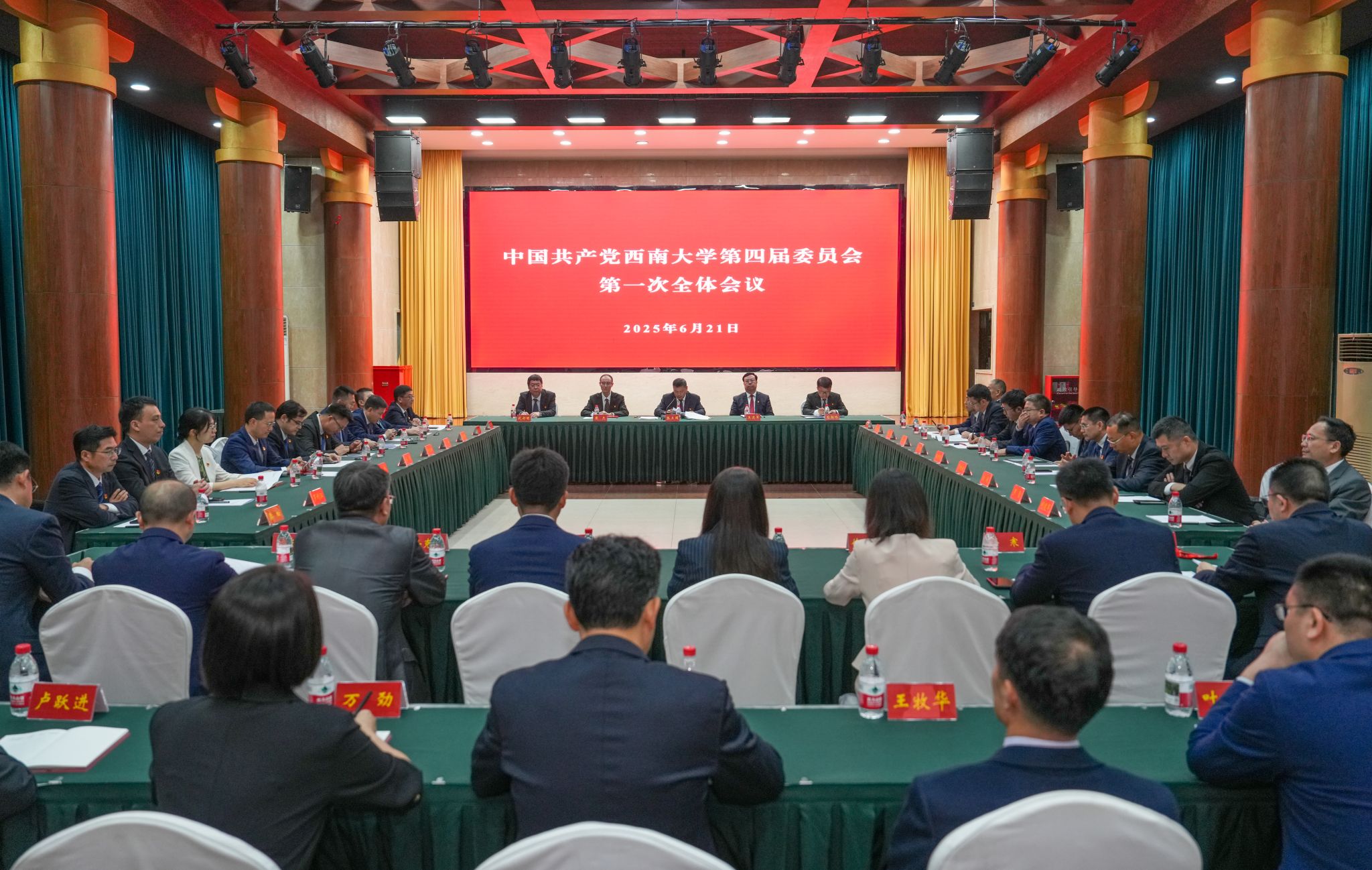 6月21日下午,中國共產黨西南大學第四屆委員會第一次全體會議在東方紅會議廳舉行。受中國共產黨西南大學第四次黨員代表大會主席團的委托,張衛國同志主持會議。